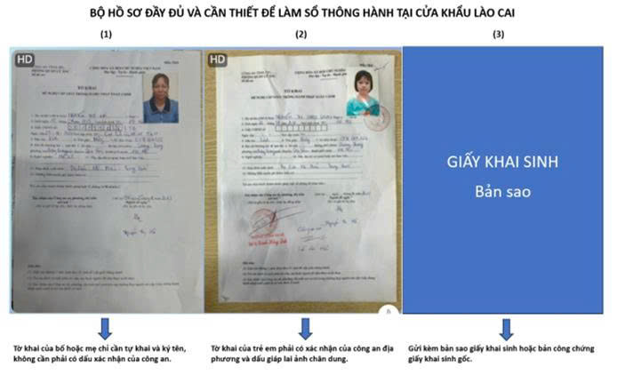 - Trẻ em: Gửi thẳng bản sao giấy khai sinh + tờ khai 08 do Công an xác nhận lên cửa khẩu + ảnh chụp chân dung. Trẻ em không đi cùng bố mẹ bắt buộc phải có giấy ủy quyền.