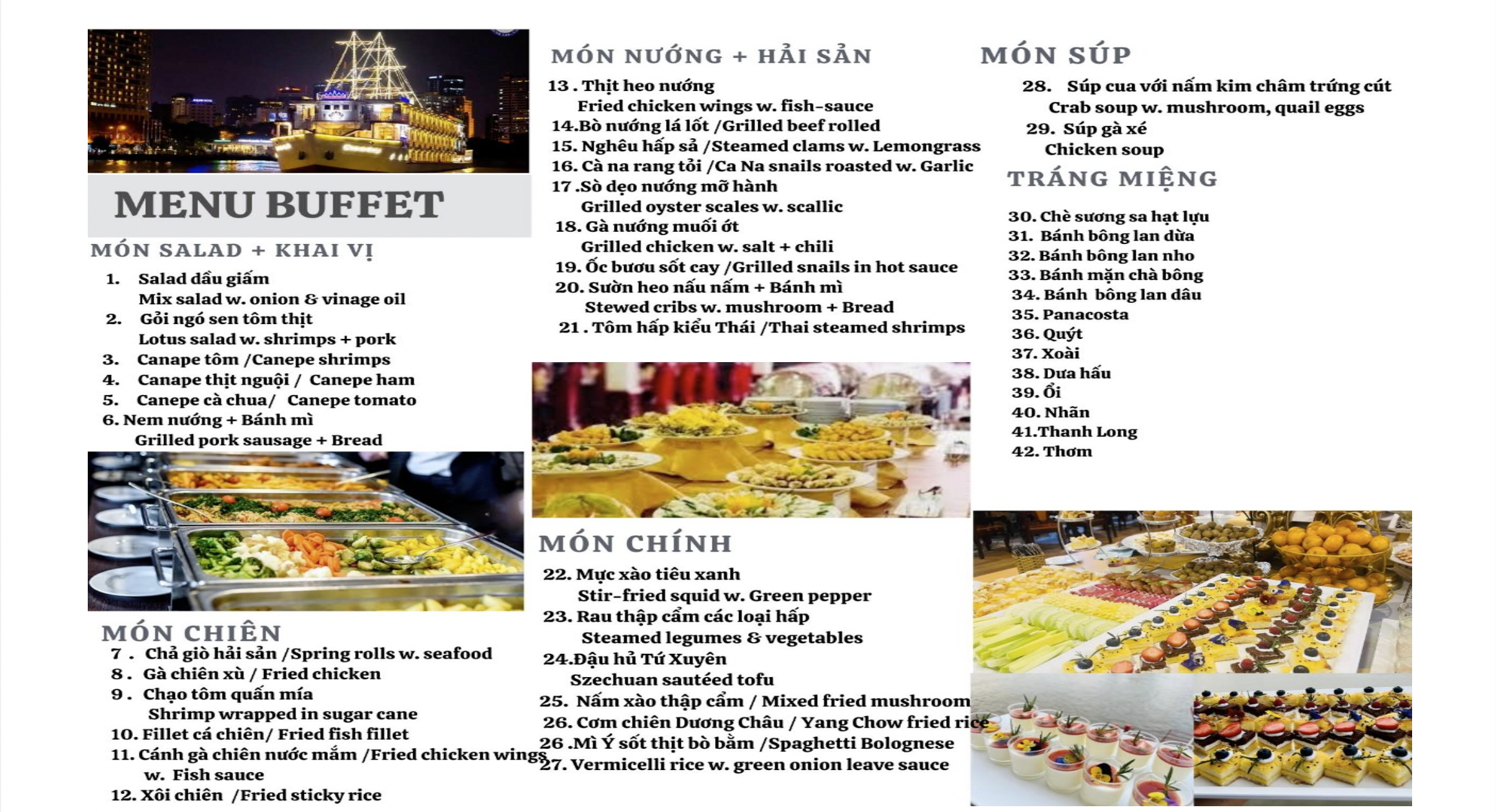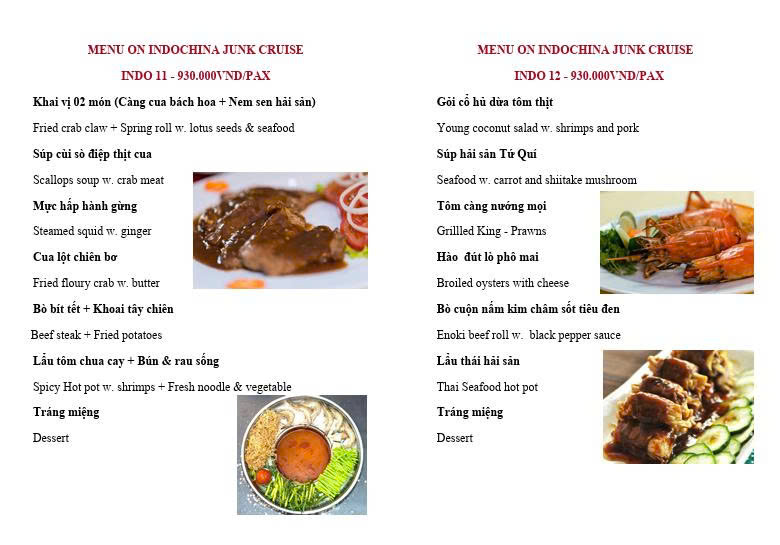 • Từ 4 khách trở lên tàu sẽ phục vụ món LẨU như trong thực đơn.